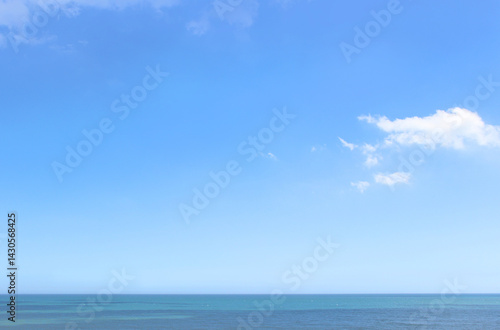 Obraz premium 夏の海と空 背景素材 空 雲 水平線 青 晴天 波 キラキラ リゾート 爽やか