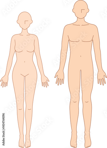 © kintomo, Fototapeta premium 前を向いた男女のシンプルなヌードイラスト