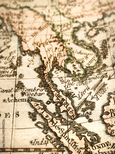 © moonrise, Fototapeta premium アンティークの世界地図 マレー半島