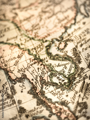 © moonrise, Fototapeta premium アンティークの世界地図 インドシナ半島