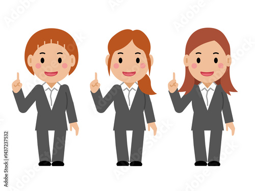 © キキセマルオ, Fototapeta premium ナンバーワンポーズをする笑顔のグレースーツの若い女性。その2