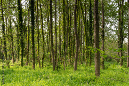 Fototapeta premium 初夏の新緑が美しい、森の中の樹木