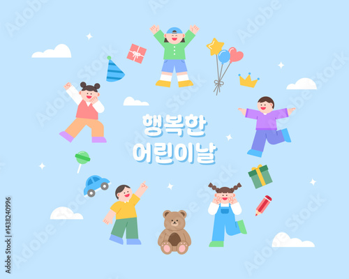 Obraz premium 어린이날 선물을 받고 행복한 귀여운 아이들 일러스트