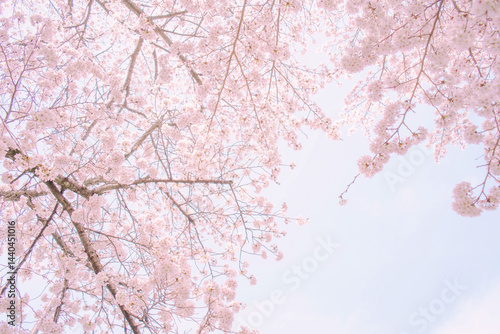 © toyotoyo, Fototapeta premium 青空を背景にした満開の桜の花が美しい風景を彩ります。この画像は春の自然の美しさを表現しています。