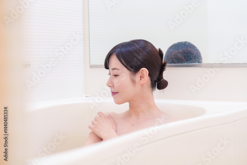 © maroke, Obraz premium 家のお風呂に入ってゆっくりとリラックスをするミドルの女性