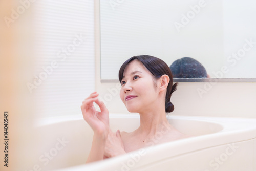 © maroke, Obraz premium 家のお風呂に入ってゆっくりとリラックスをするミドルの女性