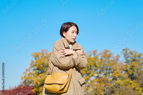 © siro46, Fototapeta premium 外で凍えるミドルエイジの女性