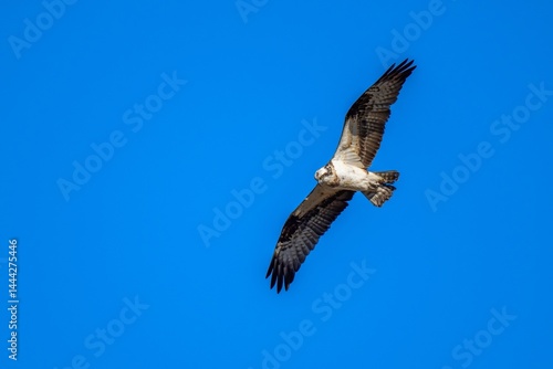 Obraz premium 青空バックに獲物を探しながら悠然と飛ぶミサゴ成鳥