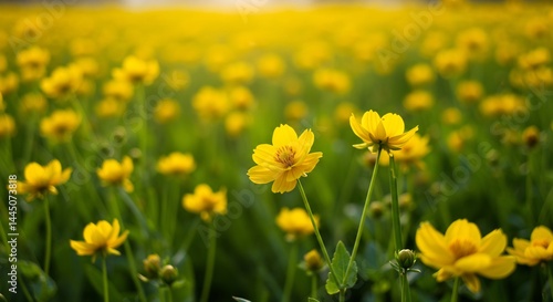 © NguyenBa, Fototapeta premium 黄金色の花畑 夕日輝く 穏やか風景