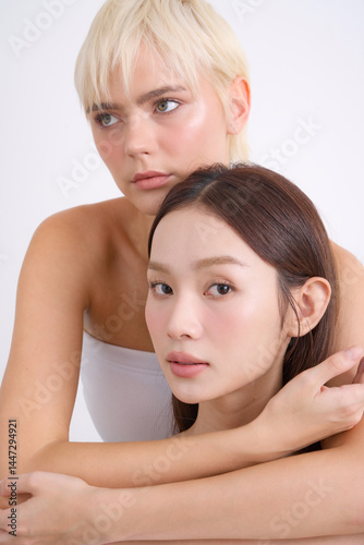 Obraz premium アジア人女性と白人女性の多国籍なスキンケアイメージ