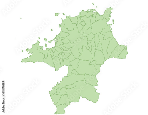 © 酢漬け きゅうりの, Fototapeta premium 福岡県 地図 黄緑 イラスト