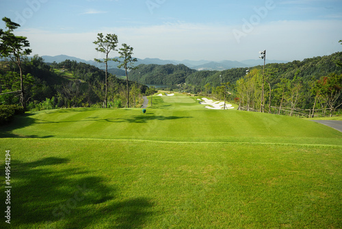 © Cokr, Obraz premium 숲속 자연을 품은 아름다운 골프장.
