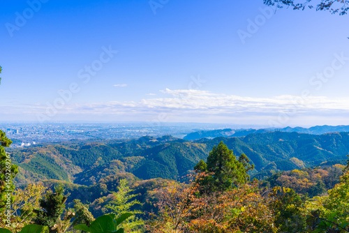 Naklejka premium 東京・高尾山 霞台展望台からのパノラマ風景(2024年11月撮影)