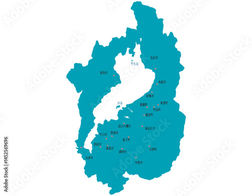 © 酢漬け きゅうりの, Obraz premium 滋賀県 地図 グリーン 斑点 イラスト
