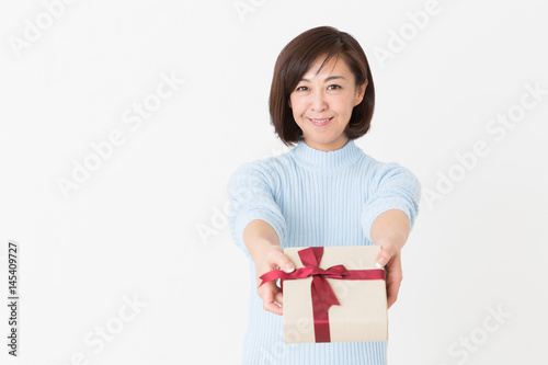 Fototapeta premium プレゼントを持つミドル女性 笑顔