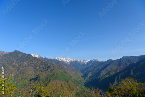Obraz premium 長野 残雪期の南アルプス南部の眺め
