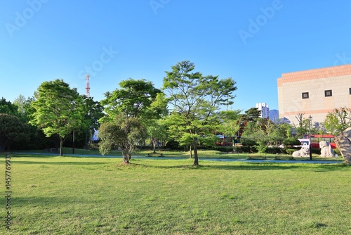 © JU, Naklejka premium 도심공원, 잔디와 나무