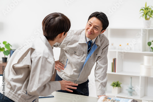 © ponta1414, Obraz premium 打ち合わせをする作業着を着た男女