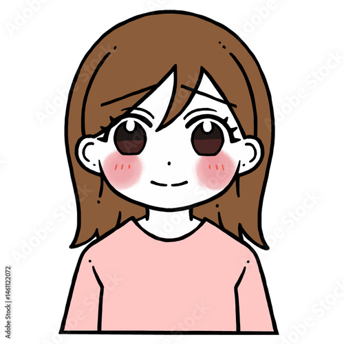 Obraz premium 照れる微笑み顔の女性のイラスト