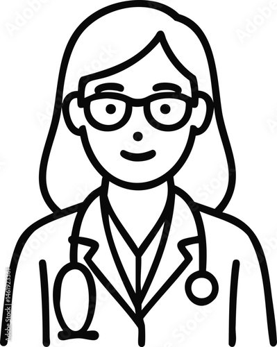 © like dream, Obraz premium 의사,캐릭터,스마일,검정,단순한, 여의사, 병원, 직업, 안경,