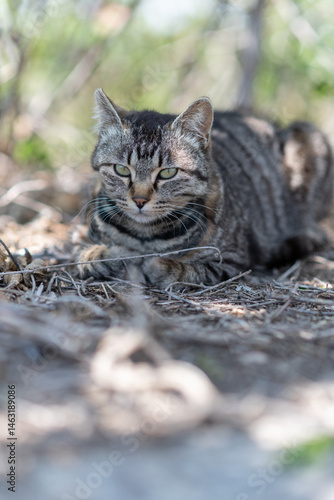Naklejka premium 道端でくつろぐ可愛い野良猫