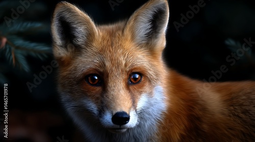 © StudioFF, Fototapeta premium 暗がりに佇む警戒心のあるキツネ