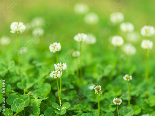 Obraz premium 5月の野原 シロツメグサの白い花18