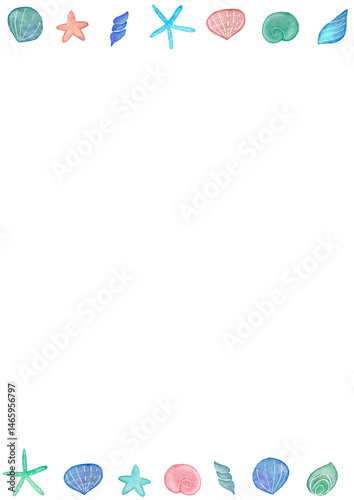 Obraz premium カラフル 貝殻 水彩 フレーム イラスト