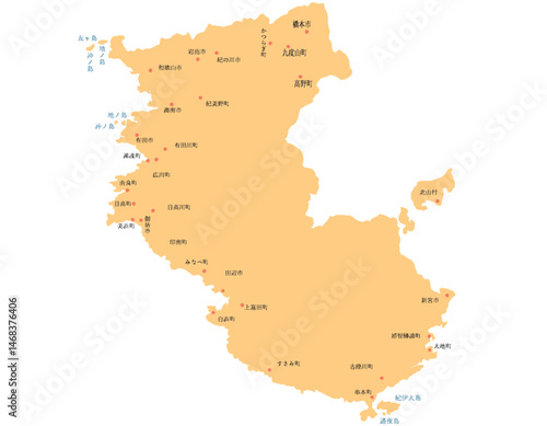 © 酢漬け きゅうりの, Obraz premium 和歌山県 地図 オレンジ 斑点 イラスト