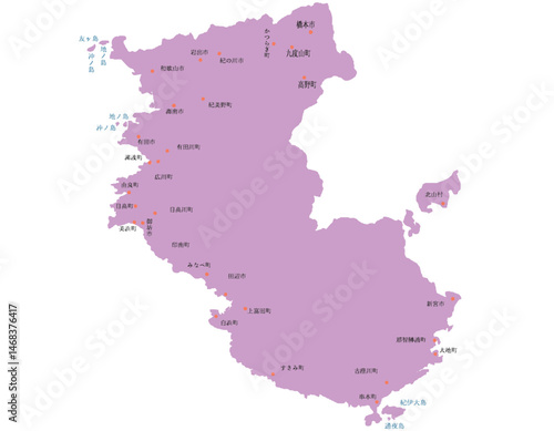 © 酢漬け きゅうりの, Naklejka premium 和歌山県 地図 紫 斑点 イラスト