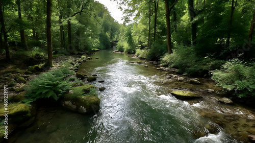 © Lemonade, Obraz premium 森の中を清らかな小川が流れる