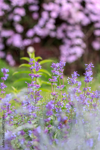 Naklejka premium 北海道由仁町、キャットミントと呼ばれるネペタ・ファッシーニ【5月】