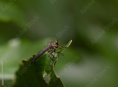 Naklejka premium 葉に止まるナミマガリケムシヒキ