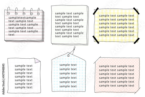 Naklejka premium シンプルでカラフルな手描き風のメモ帳素材セット