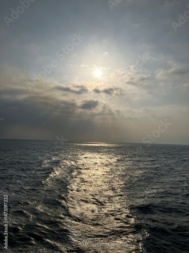 Obraz premium 海から見る雲と登る太陽