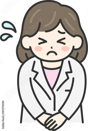 Obraz premium 頭を下げて謝罪する、女性医師(線画カラー)のイラスト