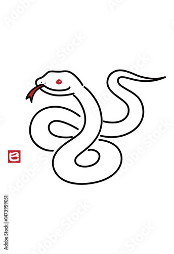 © みやもとかずみ, Fototapeta premium 八の字にとぐろを巻いている縁起の良い白蛇のイラスト シンプルでかわいい巳年の年賀状素材