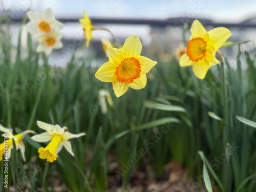 Fototapeta premium 春に咲く鮮やかな黄色のスイセンの花