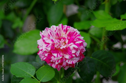 Fototapeta premium ピンクに白の班入りの薔薇の花