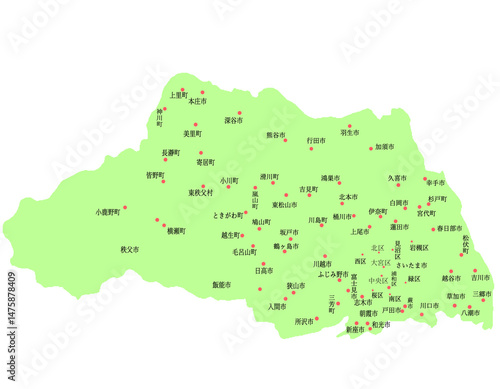 Obraz premium 埼玉県 地図 黄緑 斑点 イラスト