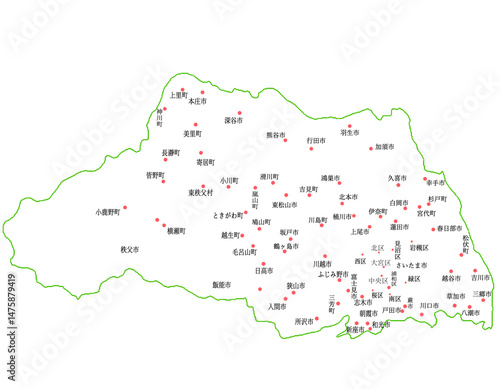 Obraz premium 埼玉県 地図 白 斑点 イラスト