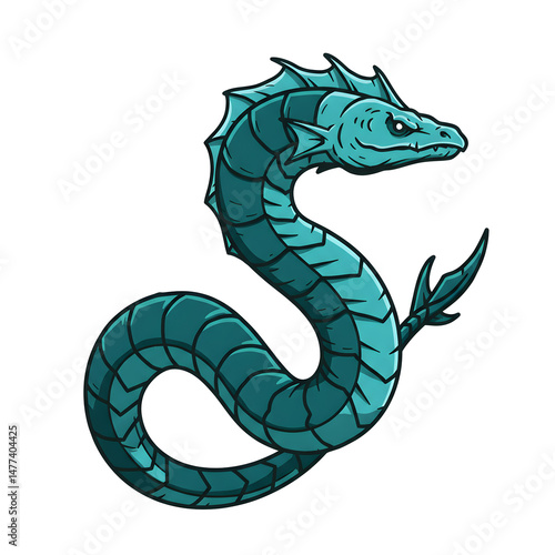Fototapeta premium 深海竜 青緑の鱗 威圧感漂う構図
