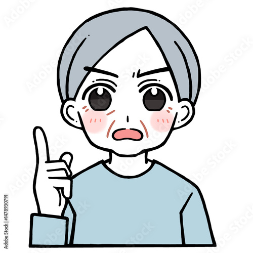 Obraz premium 怒り顔で人差し指を立てる老人男性のイラスト