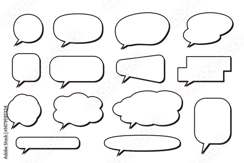 Fototapeta premium 白黒のシンプルでゆるい吹き出しセット