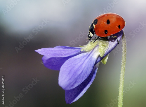 © sokoloffoto, Obraz premium Божья коровка на весенних цветах