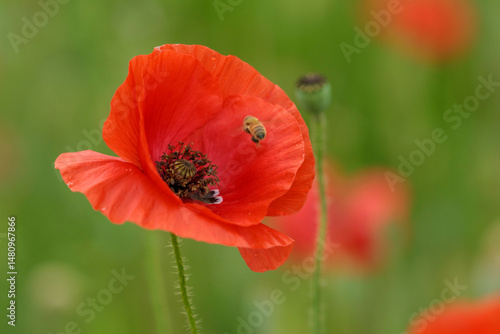 © Gottchin Nao, Fototapeta premium 赤いポピーの花とミツバチ