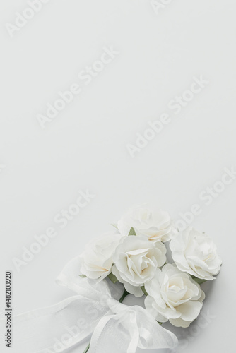 © shironagasukujira, Fototapeta premium 喪中はがき 白い花 灰色背景 シンプル