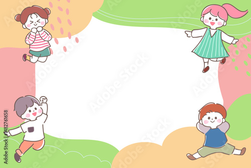 © FukuchiFactory, Obraz premium 元気な子どもたちのカラフルなフレーム ジャンプ ポップ