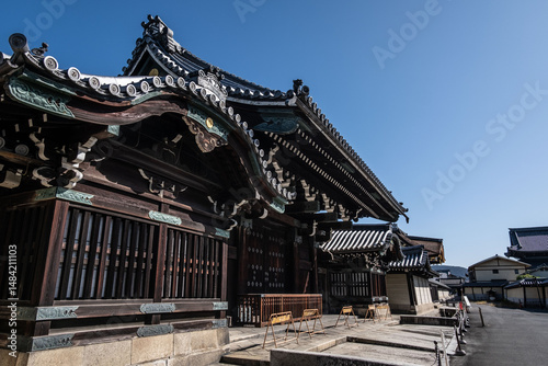 © Bhdr1996, Fototapeta premium 日本、京都、西本願寺、寺院、佛寺、佛教、木造建築、古代建築、庭園、文化財、日本文化、歷史名勝、綠色、風景、青空、秋、写真素材