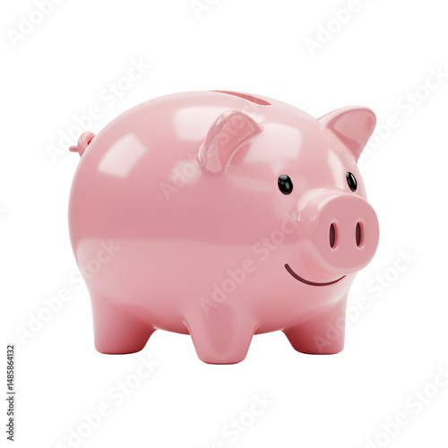 © Heini, Obraz premium 可愛いピンクの貯金箱、幸せな表情で貯蓄促進